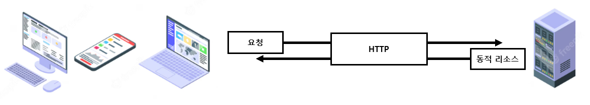 클라이언트에서 서버로 데이터를 요청할 때, 서버에서 클라이언트로 응답을 할 때 웹의 모든 동작은 HTTP를 통해서 이루어진다.
