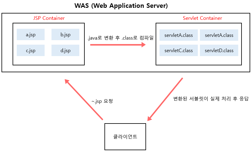 대부분의 WAS에는 웹 컨테이너와 함께 EJB 컨테이너, JMS(Message Queue), JDBC 등 다양한 서비스가 포함되어 있다.
