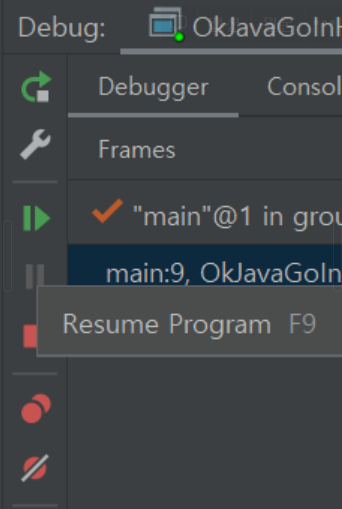 - Resume Program (F9) : 현재에서 다음 Breakpoint까지 디버그해준다.