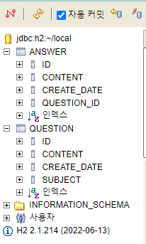 엔티티를 작성하고 H2의 콘솔을 보면 테이블이 생성된 것을 확인할 수 있다.