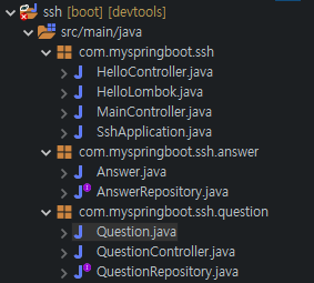 answer와 question 패키지가 ssh 아래로 들어갔다.