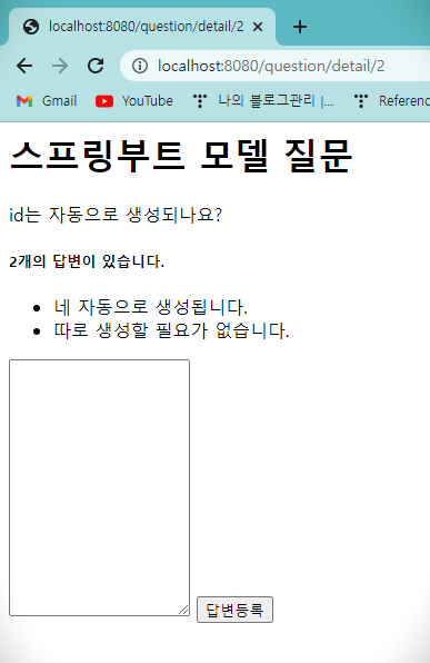 질문 상세 페이지에 답변 표시하기